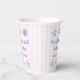 Blue hand drawn scribble sea shells bachelorette paper cups. For a bachelorette bash with a touch of seaside magic, these paper cups are an absolute must-have! The design features a collection of blue, hand-drawn sea shells, depicted in a charming, free-spirited, retro scribbled style. These playful elements are beautifully scattered across a background complemented by classic pink stripes, creating a cohesive and eye-catching aesthetic. Perfect for serving refreshing beverages, these cups will enhance the celebratory atmosphere and perfectly complement a coastal-themed bachelorette party.
