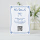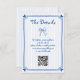 Cute blue Hand drawn scribble whimsical retro French style wedding vertical enclosure card. Introduce a touch of whimsical, retro French style to your wedding with this vertical enclosure card. The design features a hand-drawn blue scribble, incorporating charming illustrations of a bow and a heart-cornered frame. The word "Details" is prominently displayed against a pale blue and white striped background, complemented by a convenient QR code for easy access to further wedding details.