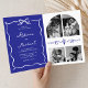 Blue Hand Drawn White Bow QR Code Photo Wedding Invitation