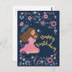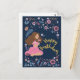 Blue Happy Birthday card with a lady surrounded by flowers.