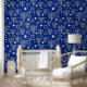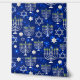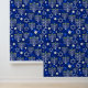 Blue Happy Hanukkah Star Of David Menorah Modern Pattern Peel and Stick Wallpaper features a sparkling blue background with menorah and star of David overlay. Perfect home decor for Hanukkah. Created by Evco Holidays www.zazzle.com/store/evcostudio