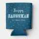 “Happy Hanukkah.” Fun, whimsical handcrafted typography, a random light blue Star of David pattern, and midnight navy blue hand drawn lines overlaying a dark teal blue background, along with your name or custom greeting, help you usher in Hanukkah. Feel the warmth of the holiday season whenever you relax with your favourite beverage with this stylish and modern Hanukkah can cooler. Personalise with your name, greeting, or delete to leave blank. Matching stickers, pillows, wrapping paper, serving trays, home décor, and more are also available. Make this Hanukkah party one to remember!