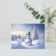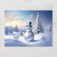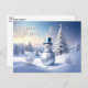 Blue Hat Snowman Christmas Tree Holiday Postcard