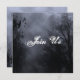 A custom square Halloween party invitation template with black grungy script letters on a spooky haunted sky with misty trees along a dark haunted road, gothic ravens and a cloudy full moon with a purple mist. Click Customise It to change your fonts, sizing and more, even save your design for later.