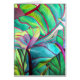 From original watercolor painting of tropical "Blue Hawaii" foliage leaves, tropical palm plant. This original brightly coloured art features colours of green, blue, purple and burgundy. Leaf and foliage art.