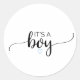 Blue Heart | Black Calligraphy It's A Boy Favour Classic Round Sticker