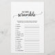 This blue heart black calligraphy "mummy or daddy" game is perfect for a rustic or modern baby shower. The front of the game card features "mummy or daddy?", and the back of the card features "baby word scramble". The minimalist design for a baby boy features modern typography and a subtle pastel blue heart. Personalise the front of the card with the name of the mum-to-be and baby shower date. You can personalise the game questions by clicking the "customise" button.