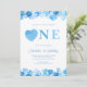 Blue Heart One First Birthday Valentines Invitation
