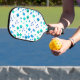 A playful pattern of hearts and cubes in shades of blue and green colours on a white background on the front of paddle and on a black background on the back of paddle. Change background colour as desired.