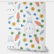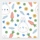 Adorable peel and stick wallpaper for your baby boy nursery with a blue bunny themed pattern with adorable little bunnies with four leaf clovers, blue hearts, carrots, and yellow daisies. Decorate your blue nursery with this bunny themed peel and stick wallpaper with cute little bunny rabbits and blue hearts and pale blue feathers.