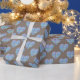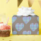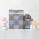 Blue hearts pattern on dark chocolate brown wrapping paper