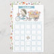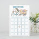 Delight your guests with this fun baby shower bingo game featuring a watercolor hedgehog on a blue bicycle, pulling a floral wagon under a “Baby Bingo” banner. Guests fill in each square with gift ideas, then mark them off during the gift opening — first to five in a row wins! A perfect match for garden, woodland, or boy-themed baby showers.
