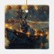 Set sail into the magic of the holiday season with this beautifully detailed illustration, showcasing a proud dog sitting in a festively decorated boat, gliding across a serene Christmas lake. The twinkling lights from nearby pine trees reflect off the water, casting a warm, festive glow that enhances the cosy ambiance. Ornaments dangle from the boat's sides, while glowing lanterns light the way, creating a scene that captures the true essence of Christmas warmth and joy. This nostalgic artwork brings a touch of holiday magic to any space, perfect for those who cherish the spirit of the season.