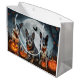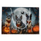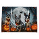 Unleash the spooky spirit with this eerie Halloween design featuring a pack of dogs under a dark, moonlit sky, surrounded by flying bats and glowing pumpkins. Perfect for those who love a touch of frightful fun with their furry friends!