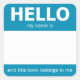Blue "Hello" Name Badge Bookplate Square Sticker