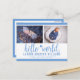 Blue Hello World Photo Birth Stat Announcement Postcard