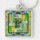 Large square premium metal keychain with an image of a stained glass artwork with a heron motif. See matching square double-sided acrylic keychain, square button, square charm, square necklace and wrist watch. See the entire This & That Keychain collection in the ACCESSORIES section.