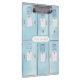 This design features a row of blue lockers. You can personalise with your name.