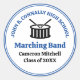 This modern blue high school marching band sticker features the student and band name under the drums. Customise for symphonic, wind ensemble, or concert band members or their director for a great graduation keepsake gift.