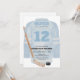 This blue hockey jersey birthday invitation is perfect for young hockey fans. The watercolor jersey design with customizable name and number creates a fun sports team look for boys hockey birthday parties ages 6–16. Personalize the details easily to create a memorable hockey themed celebration.