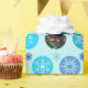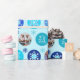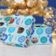 This photo wrapping paper has 8 photo slots for you to fill with a blue Snowflakes holiday pattern. This pattern has two sayings “Let it Snow” and “Feeling Frosty”. There are 7 different snowflakes. 5 have coloured fills and two are one colour. You can use 1-8 photos to fill in the design. The photos will be 3 ½” when printed.
