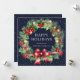 Custom blue business holiday cards featuring a watercolor wreath of red and white berries, holly, conifer tree cones and branches on a dark blue background. Easily personalize these watercolor business holiday cards with your company name.