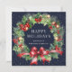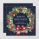Blue Holly Berry Botanical Wreath Business Holiday Card