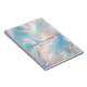 Unleash your creative flair with our iridescent blue and pink opalescent personalised notebook design, delicately accented with flecks of gold glitter for a touch of beauty and innovation. Original photo collage art and design © 1201AM Design Studio | www.1201am.com