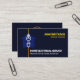 Design features an electrical supply cable that provides power to a blue home in a dark blue cover of the night. This cable houses the business name and contact details near the card's base. At the top corner lies your prestigious name and job title in yellow.
