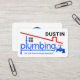 An all white cover features a red rooftop building with a blue "plumbing-faucet" pipeline signage. Over at the top lies your prestigious name with a slogan caption near the base of the card; Change the caption to this slogan to suit your own service needs.
