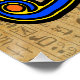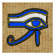 Poster with the Ancient Egyptian symbol, the Horus eye on Hieroglyphs. This design features the Horus Eye in blue, yellow and black outlines on top of a Hieroglyphs background.