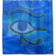 Shower curtain with Eye of Horus textured blue with gold outline abstract design. This design features the Horus Eye in blue tones on faded Horus Eyes in the background.
