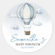 Celebrate the upcoming arrival of your little one with this enchanting Blue Hot Air Balloon Baby Shower Classic Round Sticker. Featuring a charming blue hot air balloon floating among fluffy clouds against a soft light blue background, this design adds a dreamy and uplifting touch to your decorations. Perfect for sealing favour bags, decorating envelopes, or adding a whimsical accent to your baby shower details! BBS317