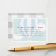 This cute boy's baby shower "please bring a book" card features a light sky blue background with a hot air balloon in baby blue and stitched clouds. The reverse side features a white background with gray gingham patterns. Change the background color, and text color, and personalize it for your needs. You can find matching products at my store.