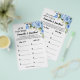 Blue floral How old were the Mum to be & the Dad to be? Baby Shower game card. English and Spanish version games included (front and back). Add Mum & Dad-to-be's Names to the template for English and Spanish version. For more customisation (change wording, add or delete the number of photos, font colour, font style ), click on personalise, scroll down and click on link "click to customise further". HOW TO PLAY: Display photos of the Mum & Dad-to-be, and number them from 1 to 5. Guests write down their guess of each photo and the person with the most correct answers wins!