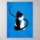 Cute cats cartoon illustration of two hugging cats - a white and a black cat - in love, on grunge textured vibrant blue background. I love cats and I love to draw them. These two cats hug each other just like humans do, except they have tails, which contribute to the hug, too. Most of my cats are a bit evil, I just like them this way, but this is a totally cute cat illustration.