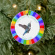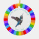 Blue Hummingbird on Rainbow Colours Ceramic Ornament