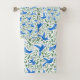 Blue hummingbirds and green leaves in a seamless pattern with a white background.