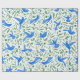 Cute blue hummingbirds with green leaves seamless pattern over white background.