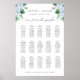 This seating chart poster features a blue hydrangea floral design and 15 tables layout. The script text heading is an image that cannot be edited. The heading image can be resized to fit any poster size. All of the other text is fully editable. For more advanced customisation of this design, simply select the "Customise It" button above.