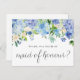 Blue Hydrangea and Ivory Rose Maid of Honour Invitation Postcard