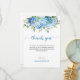 Blue Hydrangea Baby Shower Thank You Card