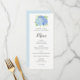 These bridal shower menu cards feature blue hydrangea flowers. You can change the text styles and colours by clicking the "Customise" button. Matching products available.