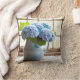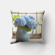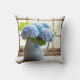 Pretty blue hydrangea bouquet in a vintage base by a rustic farmhouse window