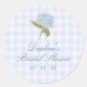 This bridal shower sticker envelope seal features soft blue hydrangea artwork, a pale blue gingham background, and delicate script for a look that feels classic, feminine, and polished. Perfect for sealing envelopes, dressing up favor bags, or adding a refined finishing touch to your bridal shower stationery, this design blends elegant blue floral style with a subtle Southern preppy charm. Timeless and coordinated, it is a beautiful detail for a hydrangea bridal shower, garden party bridal shower, or something blue celebration.