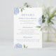 This beautiful blue hydrangea floral wedding enclosure card features watercolor blue flowers and your custom text. The reverse is a thin watercolor stripe, which can be deleted for a solid colour back. Use the template to fill in your information. The "Customise further" feature can be used to change the font (size, style, colour), and add more lines of text, change the layout and add text to the back.