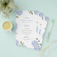 This beautiful design features blue hydrangea blooms and your custom text. Use the template form to add your information. The Design Tool can be used to access the advanced editing menu where you can change the font, colours and layout of the text or add text to the back.