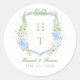 Blue Hydrangea Crest Wedding Monogram Classic Round Sticker