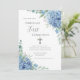 Blue hydrangeas on a white background beautiful religious first communion invitation. A beautiful and elegant invitation for any season. Beautiful coordinating holy cross in the center of this beautiful design. Simply lovely. The watercolor hydrangeas are just stunning. Classy & chic.
