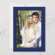 Elegant yet simple Art Deco inspired wedding invitation design with a navy blue background with a taupe laced blue hydrangea watercolor artwork. The frame has simple typography art deco lines and your Save the Date text. Copyright, Audrey Jeanne Roberts.